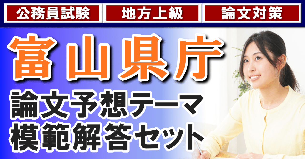 富山県庁の論文過去問と予想テーマ模範解答セットを紹介しています。